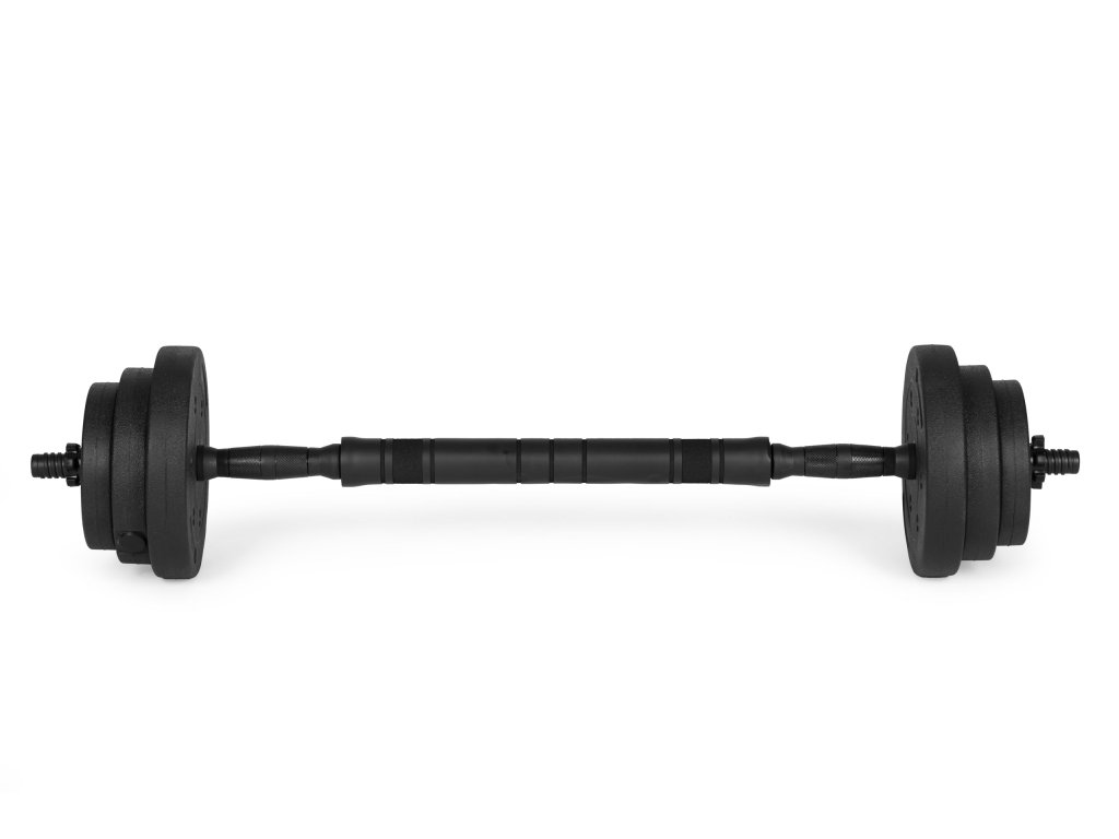 Díky robustní spojovací tyči vytvoříte jednu velkou činku – ideální pro cviky jako dřepy, mrtvé tahy nebo tlaky. Umožňuje silový trénink bez nutnosti dalšího vybavení.