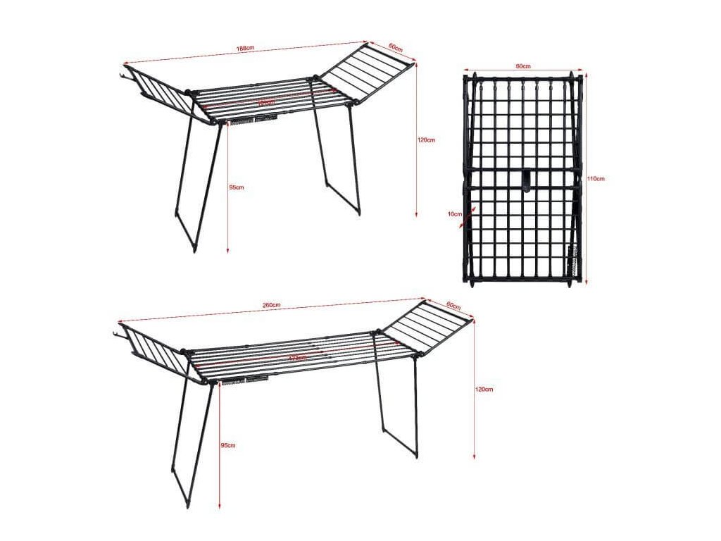 Díky sušicí ploše až 27 metrů bez problémů usušíte oblečení, ložní prádlo i ručníky pro celou rodinu. Rozkládací konstrukce umožňuje nastavit šířku podle aktuálních potřeb i dostupného prostoru, takže se přizpůsobí každé domácnosti.