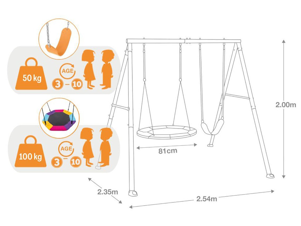 Proměňte svou zahradu v bezpečné hřiště plné radosti! Dvojitá houpačka INTEX 44126 spojuje klasickou dětskou houpačku s flexibilním sedátkem a houpačku Čapí hnízdo, která přináší zábavu pro více dětí najednou. Atraktivní barevné provedení a promyšlená ergonomie zajistí, že se stane oblíbeným místem pro hraní i relaxaci.