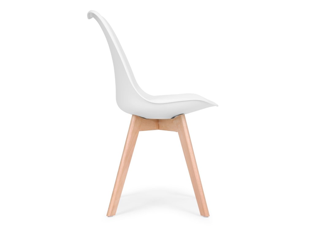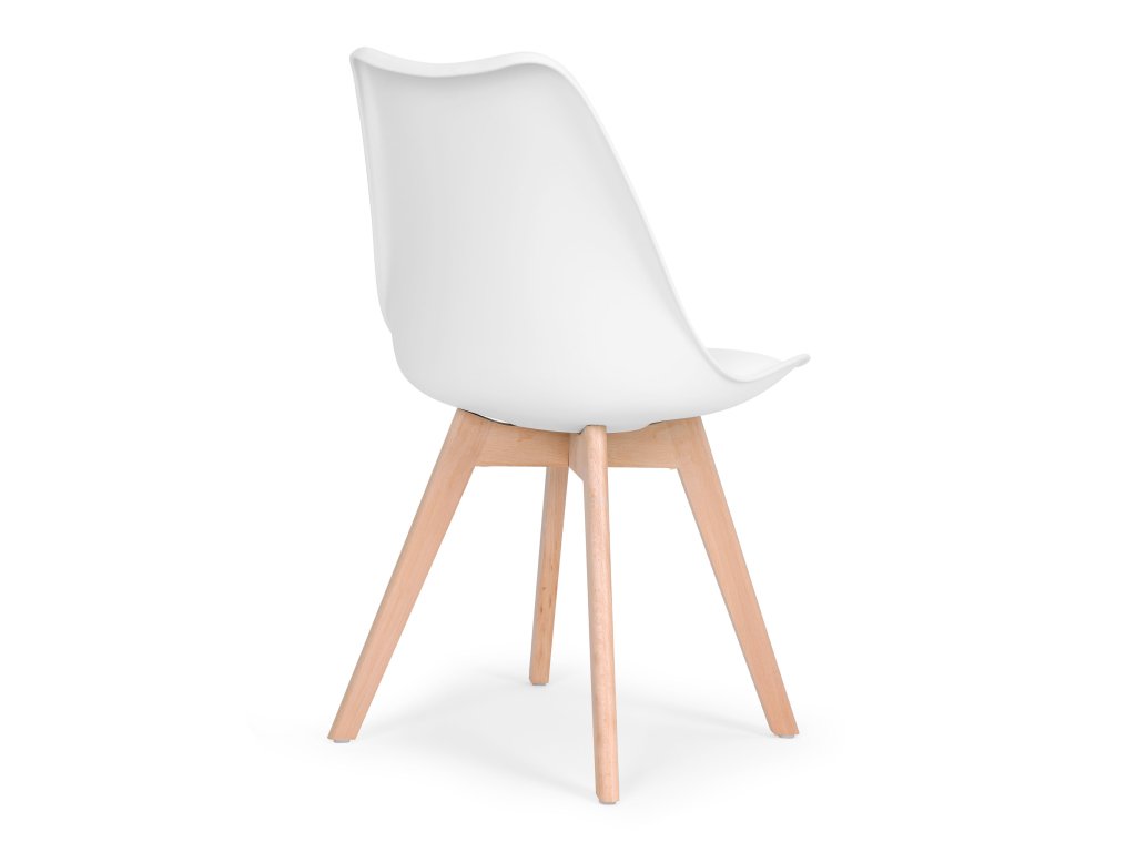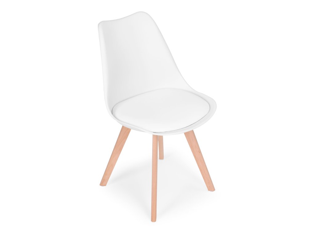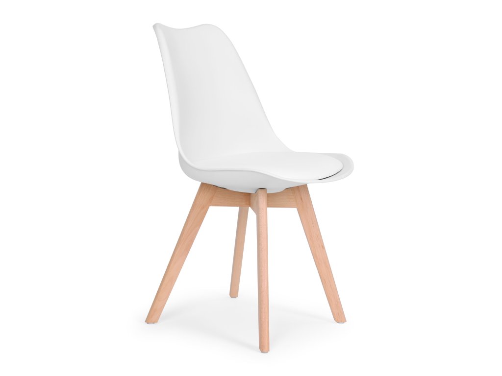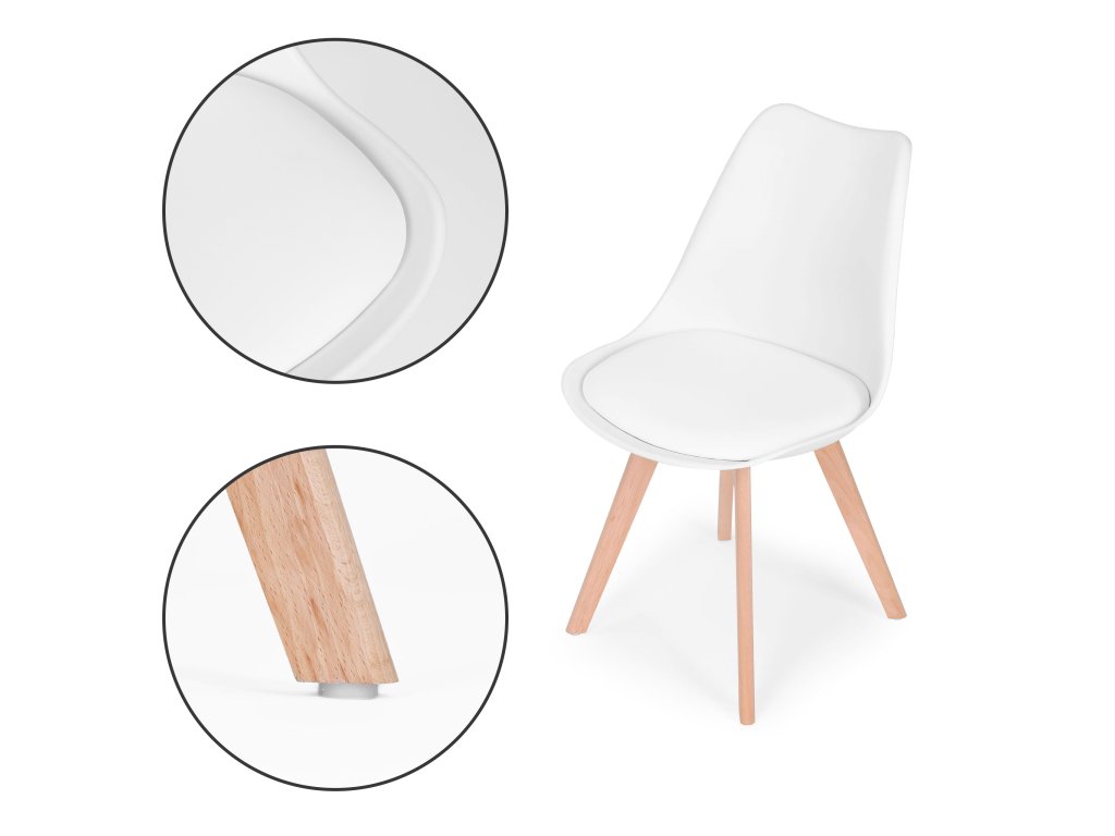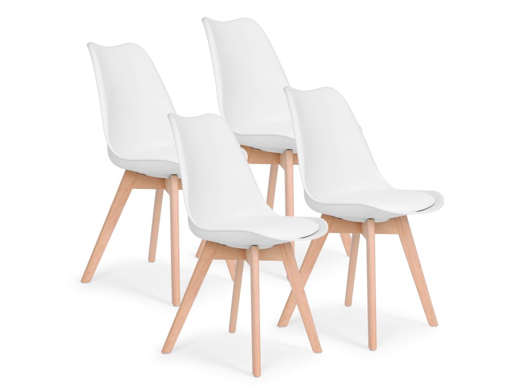 Sada 4 židlí ModernHome – bílá, bukové nohy, polštář z ekokůže