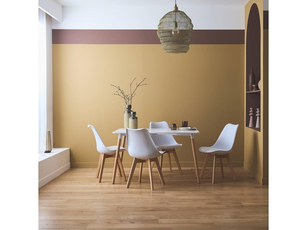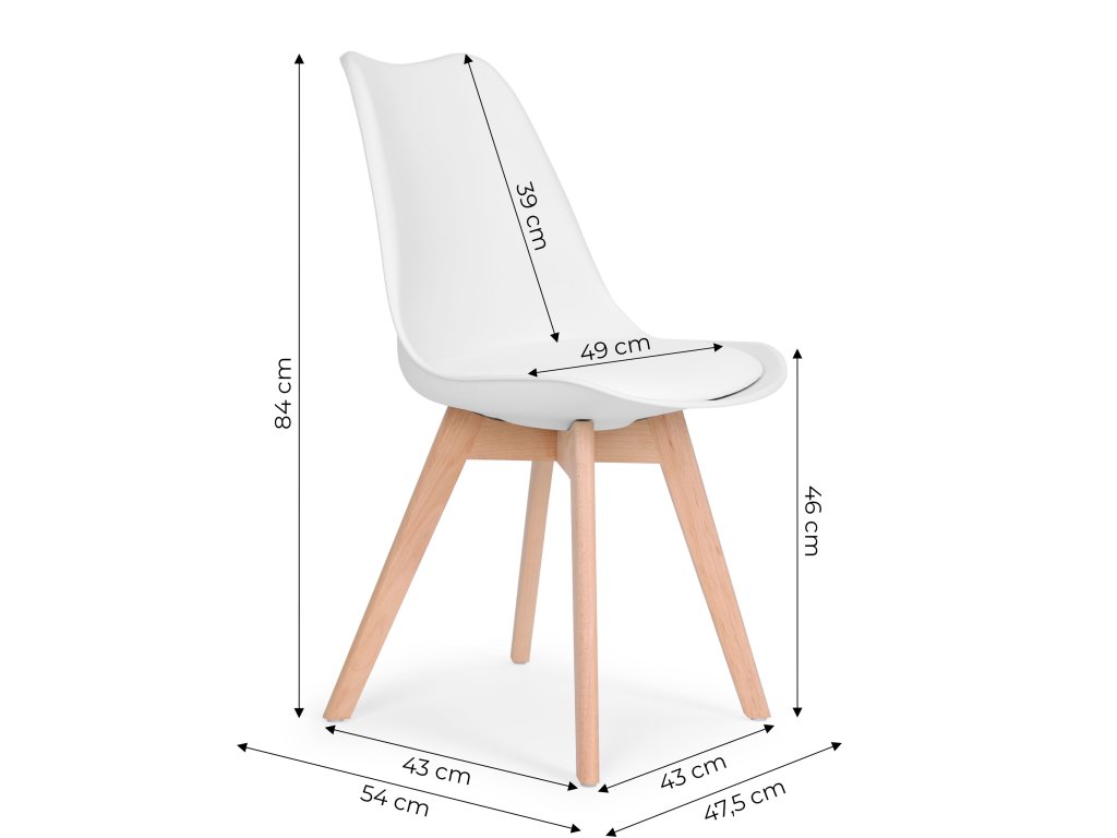 Nohy židlí jsou vyrobeny z pevného bukového dřeva, které zajišťuje stabilitu a elegantní vzhled. Sedák s polštářem z ekokůže je odolný proti znečištění a snadno se čistí, což oceníte při každodenním používání.