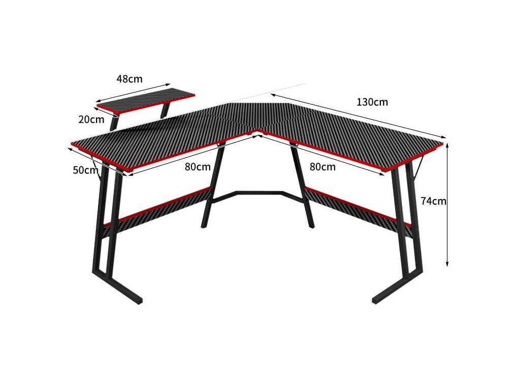 Pracovní deska o tloušťce 15 mm s povrchem z carbonu je odolná proti poškrábání a intenzivnímu používání, zatímco ocelová konstrukce zajišťuje stabilitu a dlouhou životnost. Přídavná police na monitor (48 × 20 cm) zvedá obrazovku do ergonomické výšky, uvolňuje místo na pracovní ploše a zvyšuje pohodlí při práci i hraní.