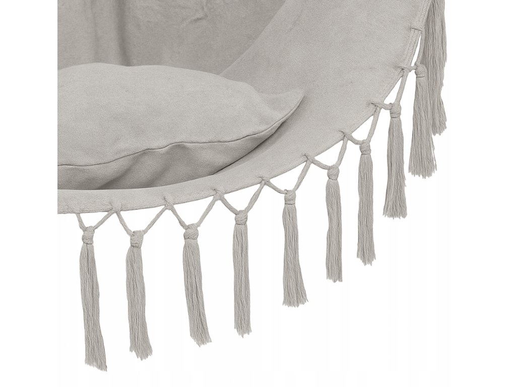 Stylový a pohodlný hamak v boho designu, ideální pro odpočinek doma i na zahradě. Díky lehké konstrukci a snadné montáži jej zavěsíte kdekoli – v obýváku, ložnici, na balkoně či terase.