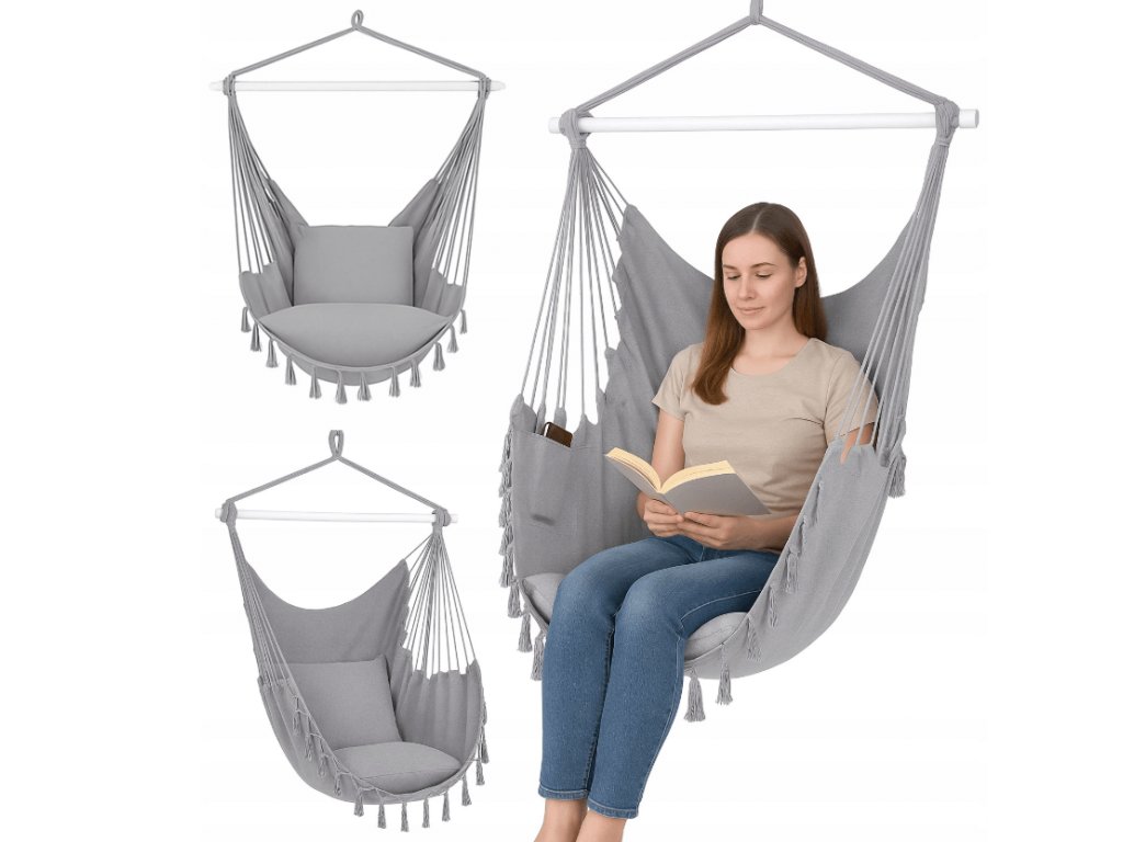 Dodejte svému domovu i zahradě jedinečný šarm a užijte si maximální pohodlí. Toto moderní houpací křeslo je skvělou volbou do obývacího pokoje, ložnice, na balkon, terasu i do zahrady. Praktické, dekorativní a ideální také jako originální dárek.
