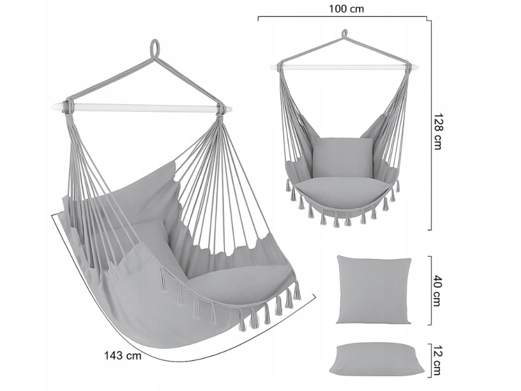Brazilské závěsné křeslo s polštáři a kapsou – 90 cm, nosnost 150 kg