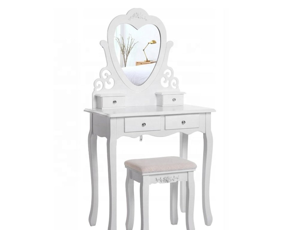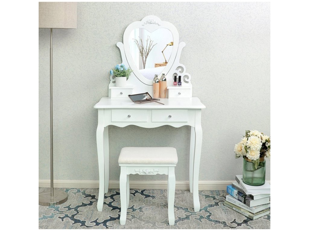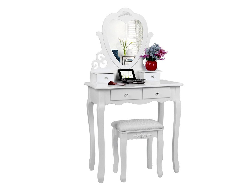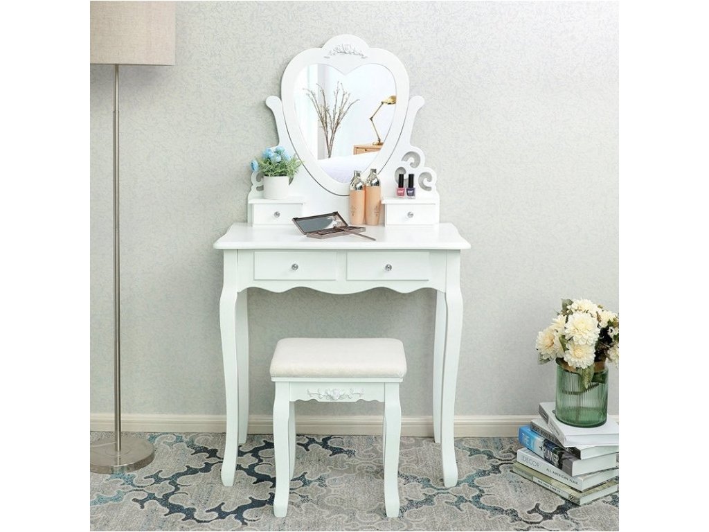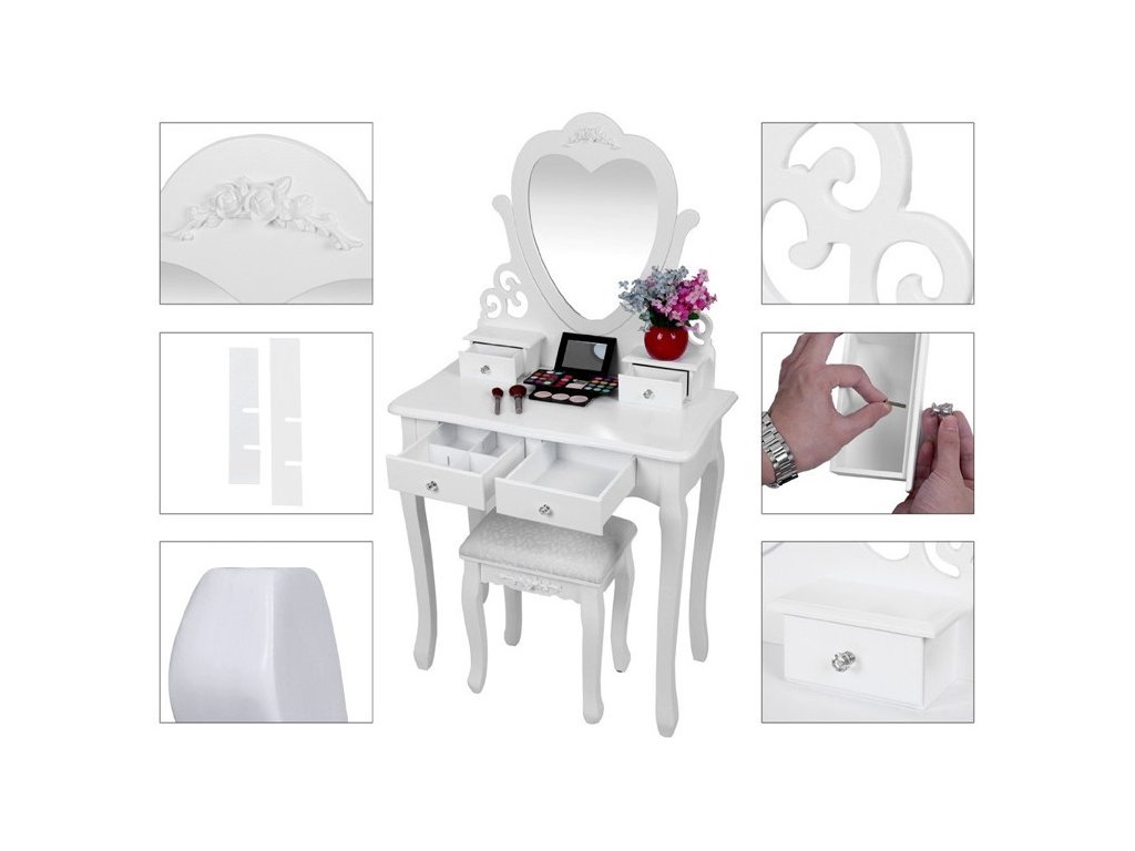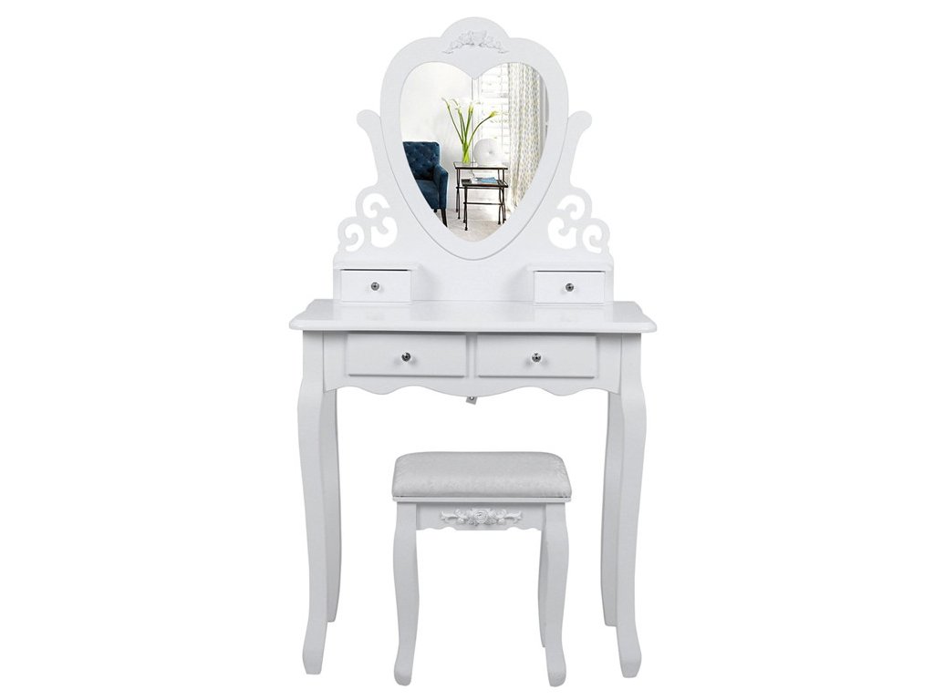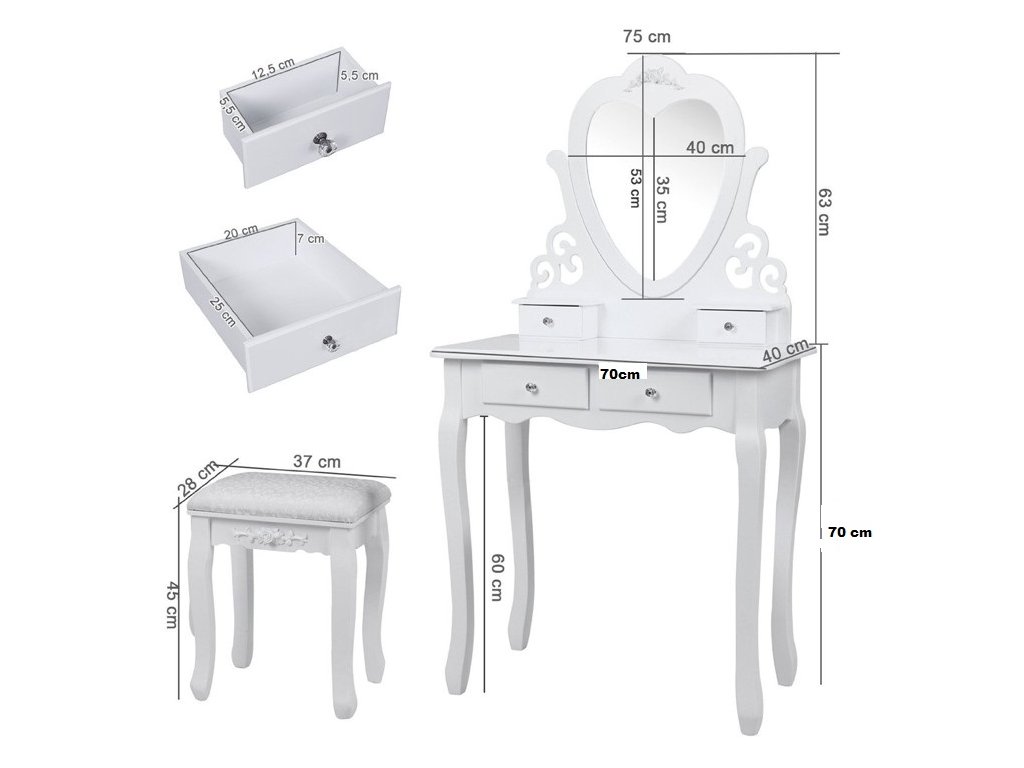 Toaletní stolek se zrcadlem a taburetem 03 – bílý, 4 zásuvky
